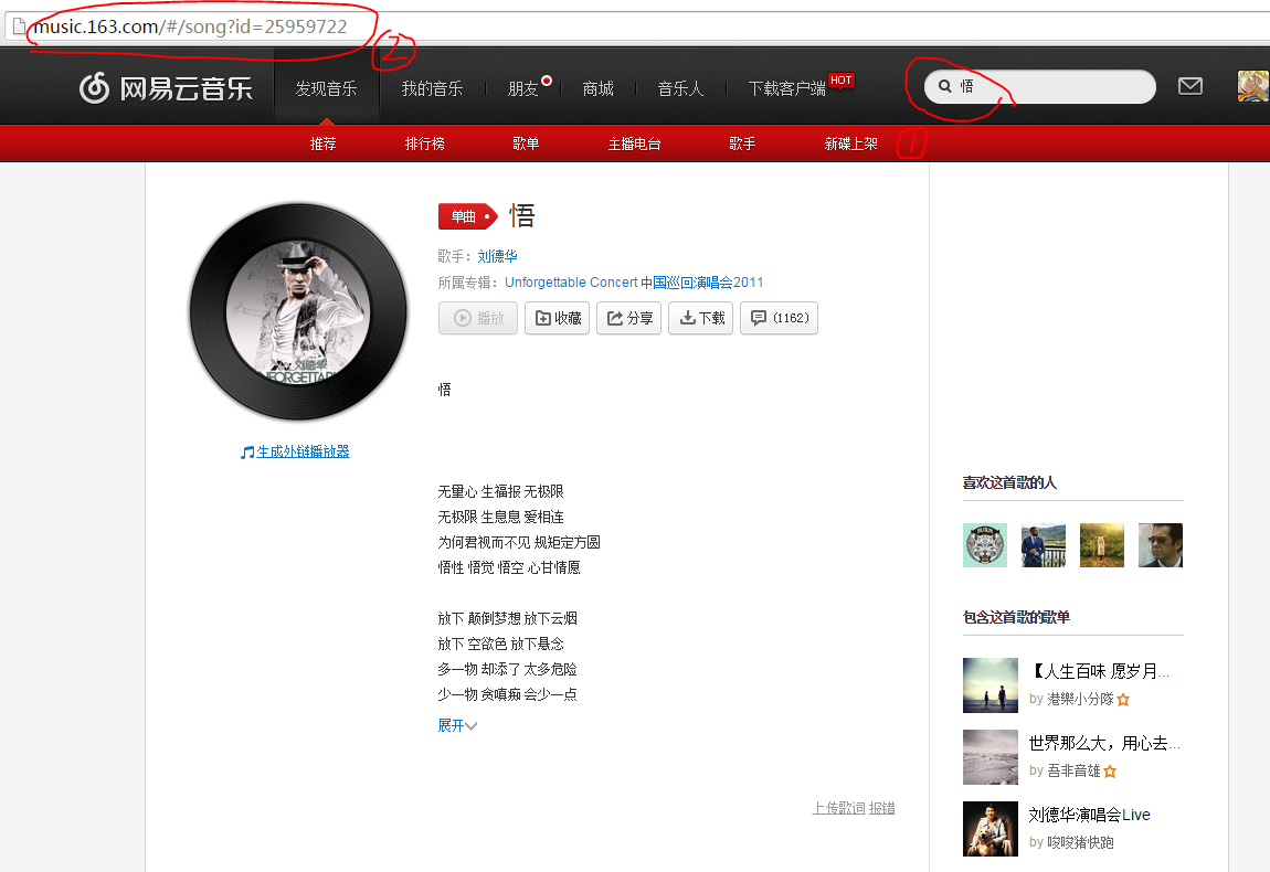 浏览器中登陆自己的网易云音乐帐号,找到想要的歌,把地址栏复制了.